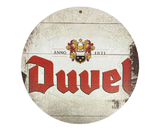 Houten reclamebord met Duvel bedrukking, erg gaaf voor in uw mancave of kroeg! Het reclamebord heeft 1 voorgeboord gat en wordt geleverd met een stukje touw om deze gemakkelijk op te hangen.
